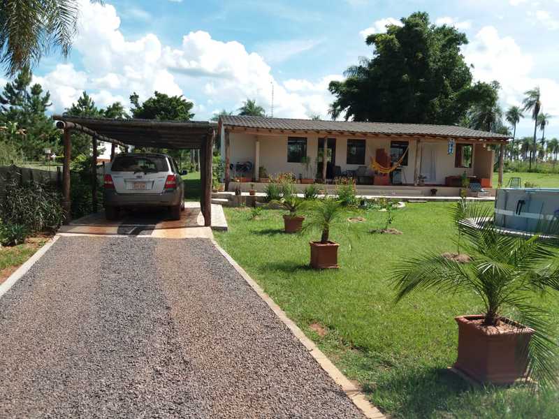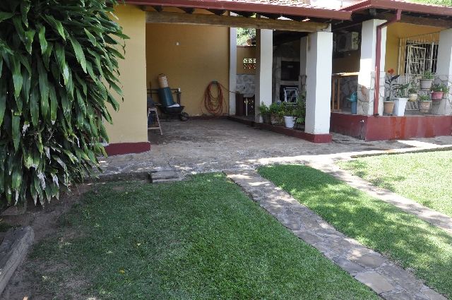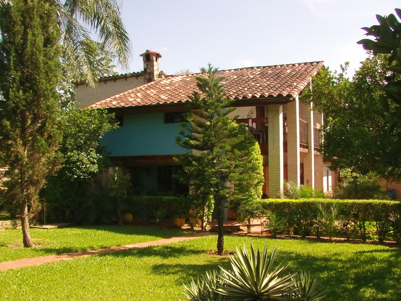 Beschreibung: Dieses absolut idyllische Objekt, liegt nur wenige Minuten von der Hauptstraße in einer sehr ruhigen und sicheren Umgebung, zwischen lieben paraguayischen Nachbarn. Das Haus hat ein Stockwerk und unterteilt sich folgendermaßen: im Parterre ist 1 Wohnzimmer mit offenem Kamin, 1 weiteres Zimmer, 1 Küche mit Essecke. Im 1. Stock ist ein Schlafzimmer, ein weiteres Zimmer (Ankleide od. Schlafzimmer), 1 Bad mit WC und Dusche, sowie vom Schlafzimmer aus der Zugang zum Balkon. Getrennt davon mit eigenem Eingang, gibt es noch ein Gästezimmer (od. Büro) mit Vorraum und Bad. Weiters befindet sich noch 1 überdachter Quincho, 1 überdachter Grillplatz und 1 Lagerraum, ein Pool mit ca. 20 m2, sowie ein Carport für 2 Fahrzeuge auf dem Grundstück. Abgerundet wird dieses gepflegte Objekt durch eine Vielzahl an Obstbäumen wie Bananen, Orangen, Pomelos, Mandarinen und Mangos.